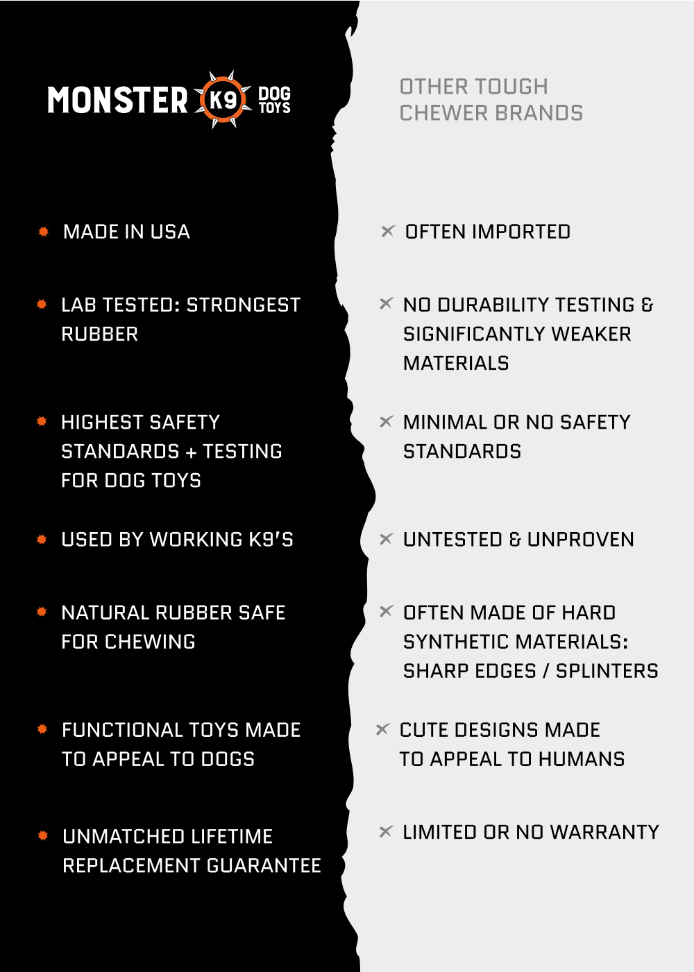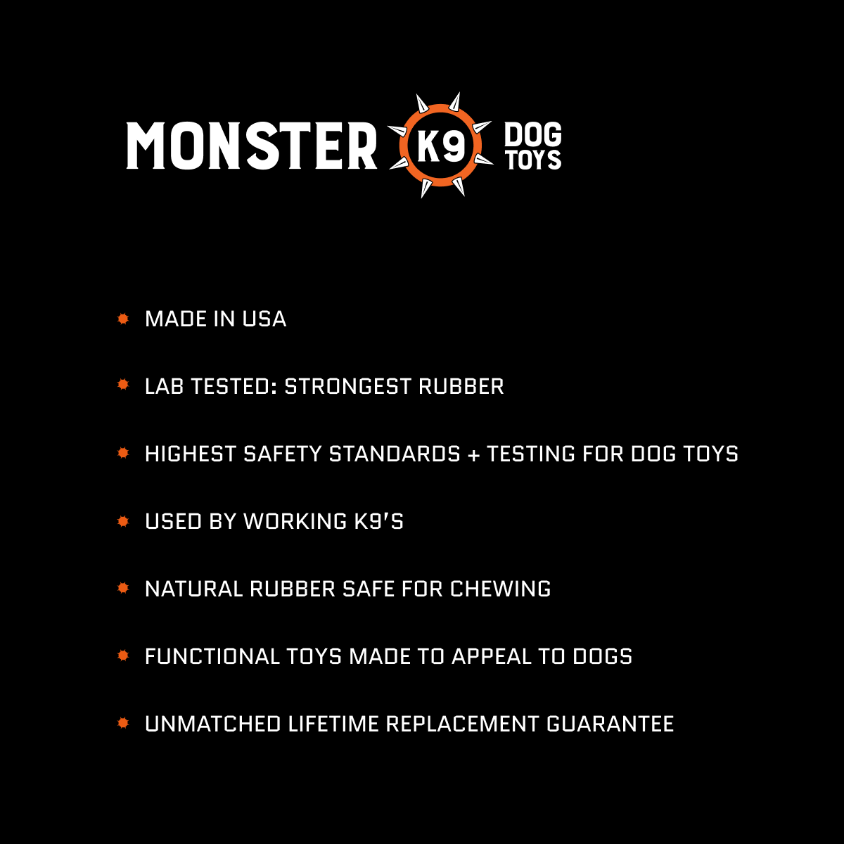 LOVED BY AGGRESSIVE CHEWERS: Tested and loved by thousands of strong, destructive chewers including German Shepherds, Pit Bulls, Bully’s, Labs & more. While other brands last days or weeks, Monster K9 typically endures for months or even years